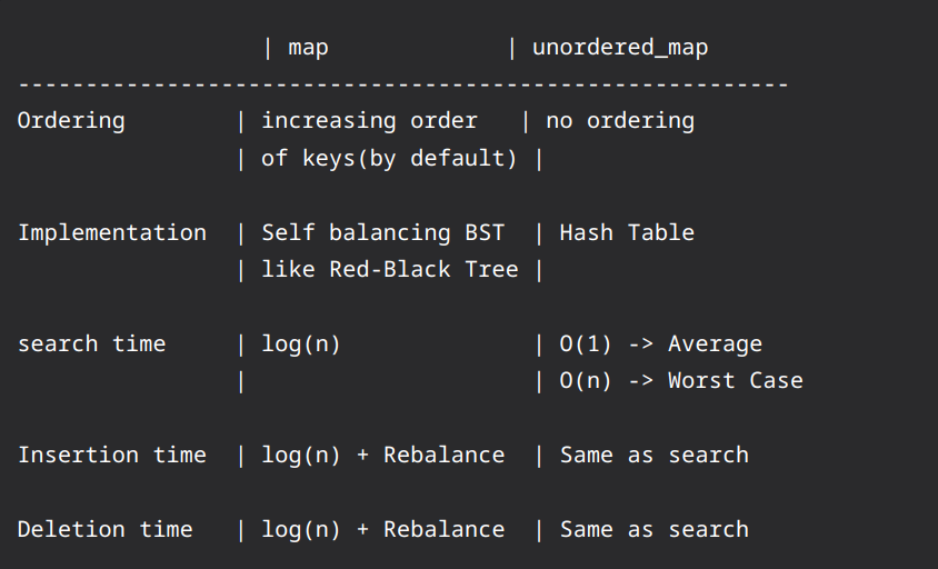 Unordered Map (Hash Table) vs Map (Red Black Tree)